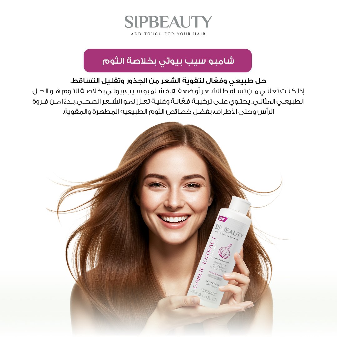 إذا كنتِ تعانين من تساقط الشعر أو ضعف نموه، فـ شامبو سيب بيوتي بخلاصة الثوم هو الحل الطبيعي والمثالي. تركيبة فعّالة غنية بمستخلص الثوم الطبيعي المعروف بخصائصه المقوية والمطهّرة، لتمنح شعرك كثافة وصحة تبدأ من الفروة.