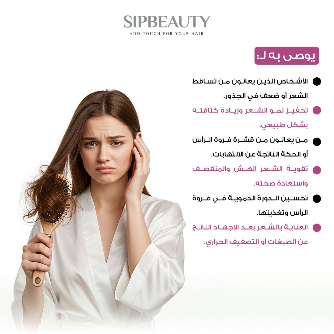 • تحفيز نمو الشعر وزيادة كثافته بشكل طبيعي.