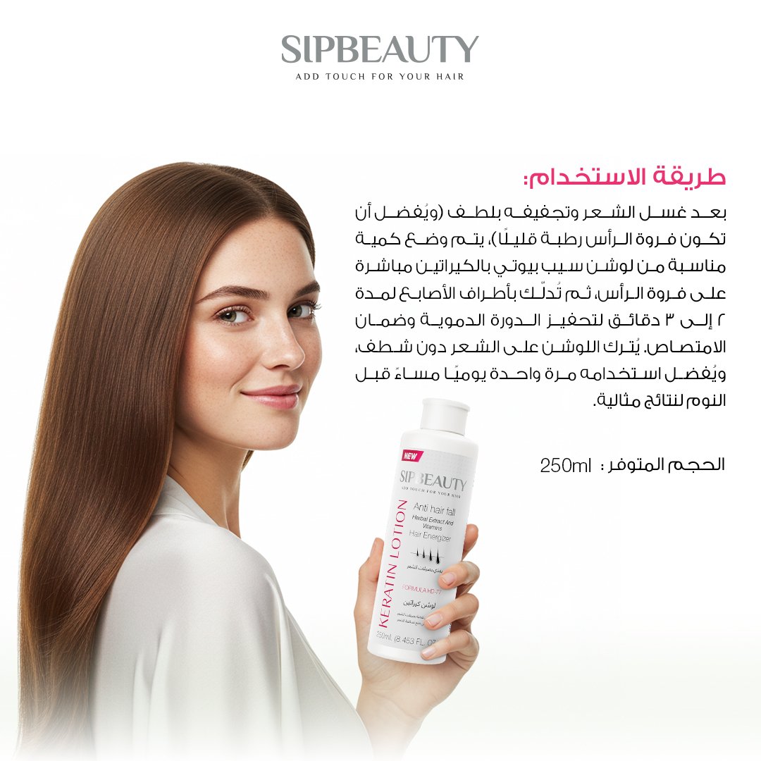 استعيدي قوة وكثافة شعرك مع لوشن سيب بيوتي بالكيراتين، تركيبة متقدمة صُممت خصيصًا للحد من تساقط الشعر وتقوية البصيلات، بفضل مزيج فعّال من الكيراتين المركز ومكونات مغذية تعيد للشعر حيويته من الجذور حتى الأطراف.
