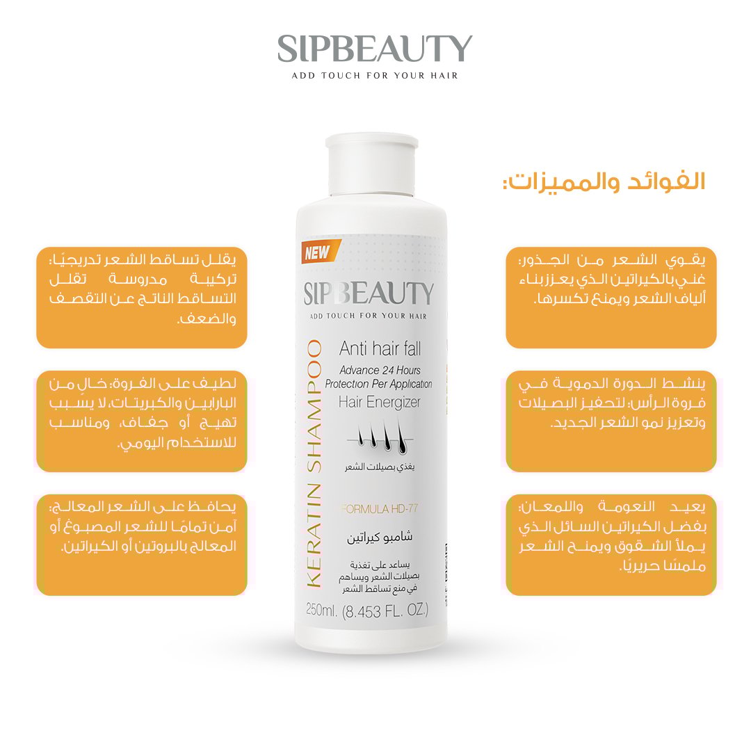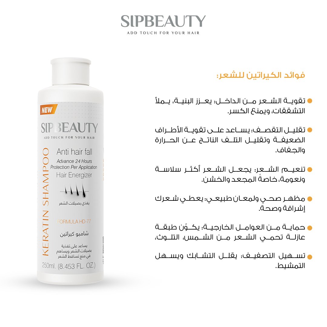 للحصول على أفضل النتائج، استخدميه مع بلسم أو سيروم سيب بيوتي بالكيراتين المضاد للتساقط.