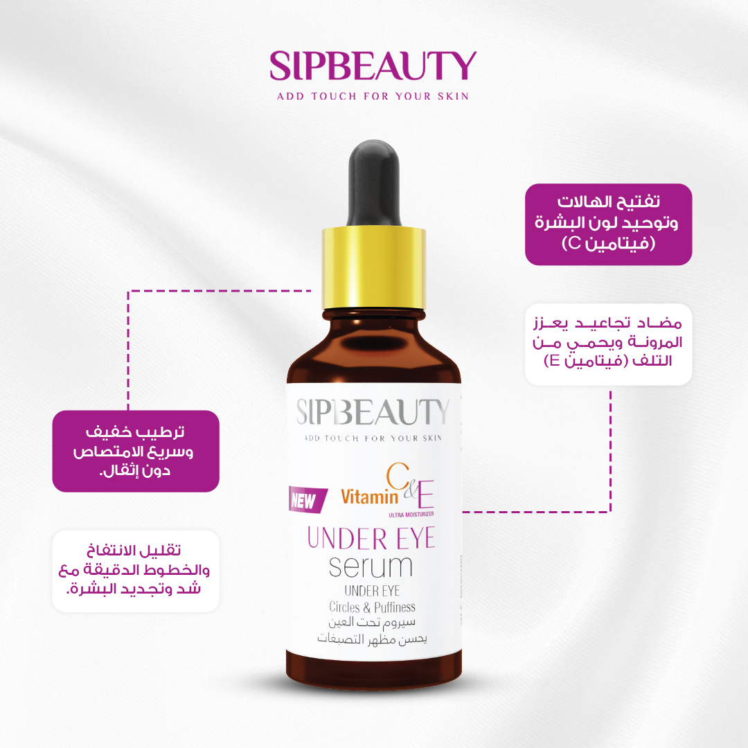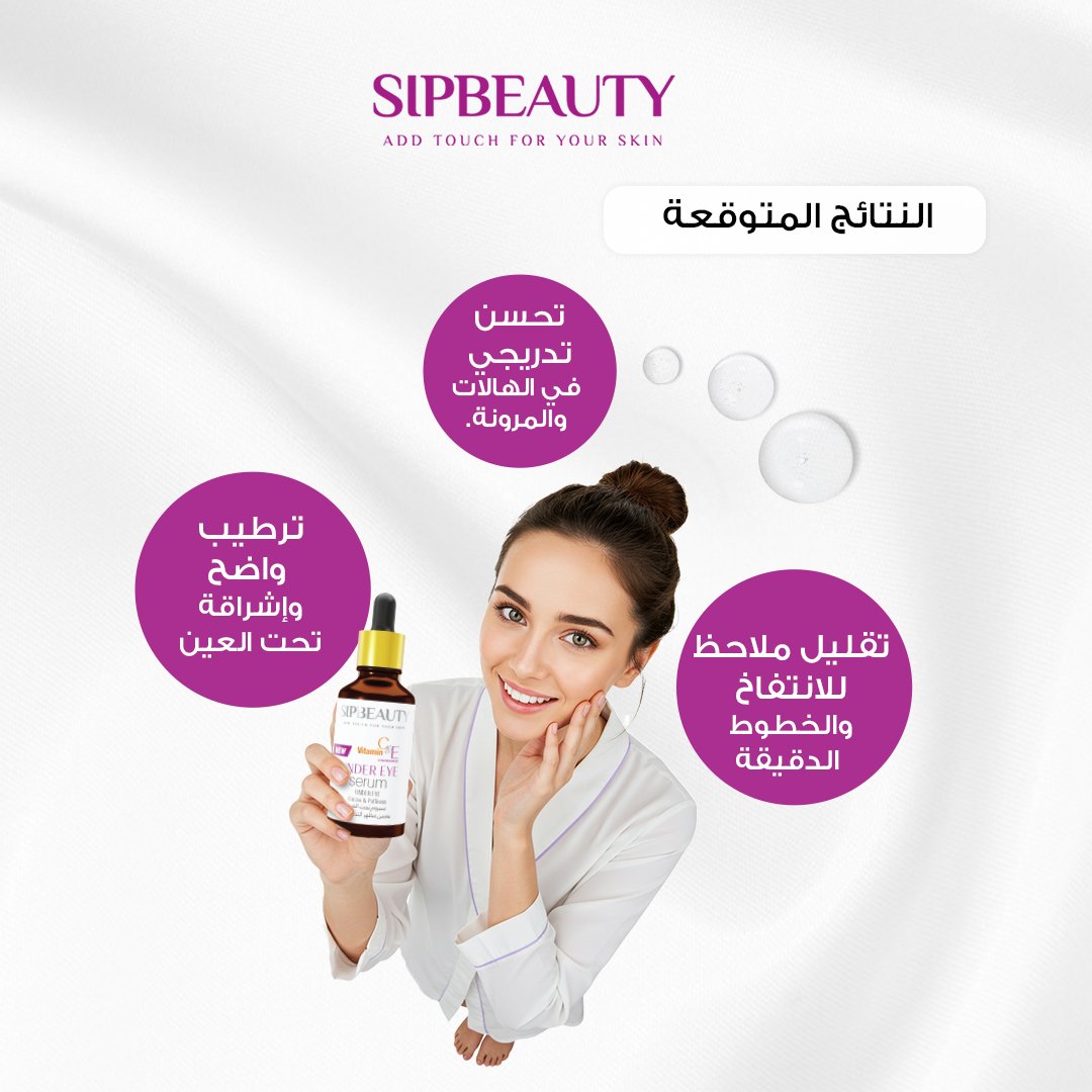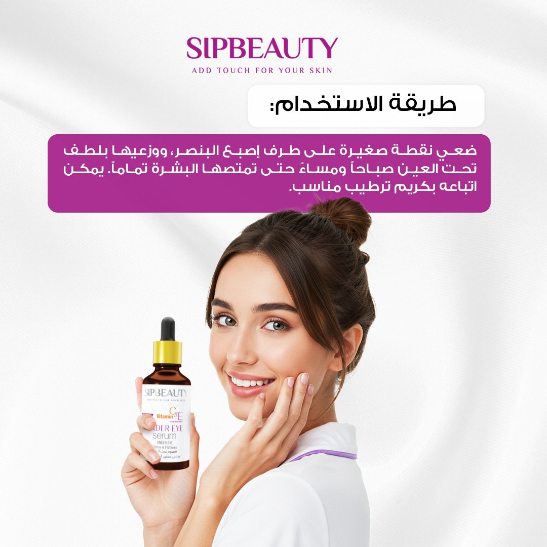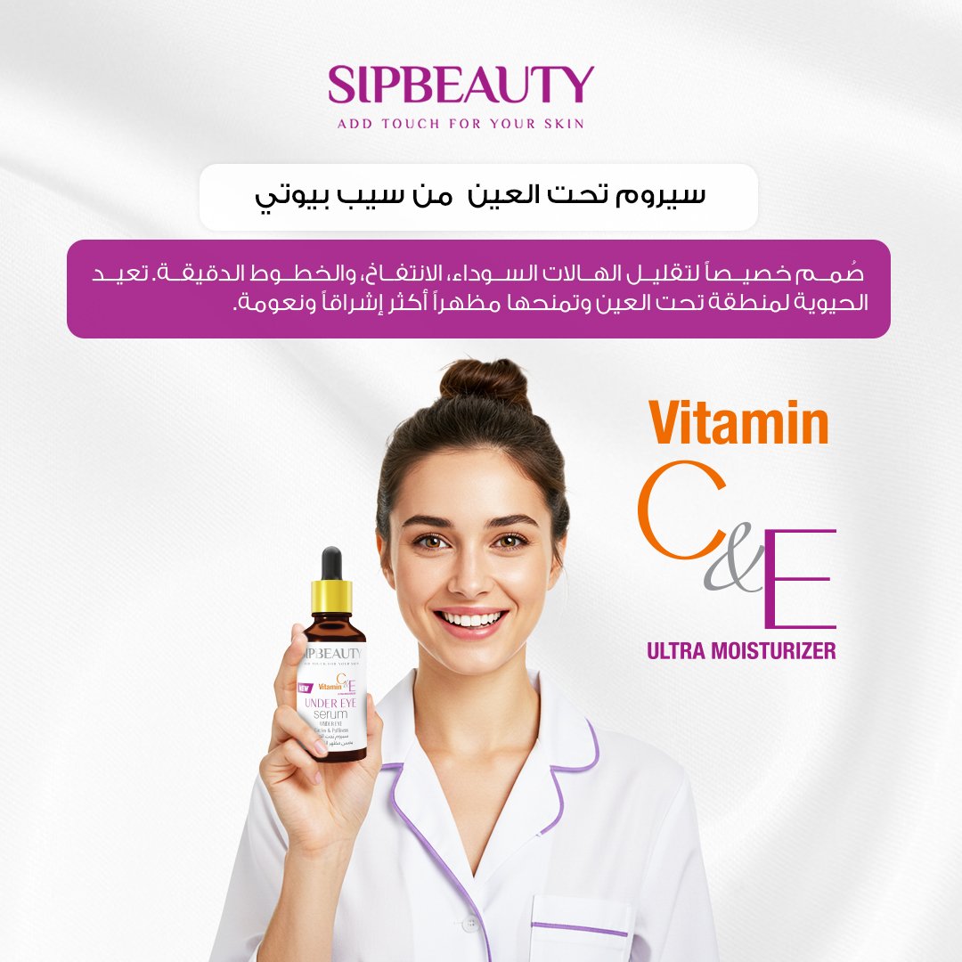 دلّلي عينيك مع سيروم تحت العين من سيب بيوتي، تركيبة متقدمة تحتوي على فيتامين C وE المصممين خصيصًا لتقليل الهالات السوداء، الانتفاخ، والخطوط الدقيقة. يمنحك هذا السيروم مظهرًا مشرقًا ومنتعشًا، ويعيد الحيوية لمنطقة العين الحساسة.