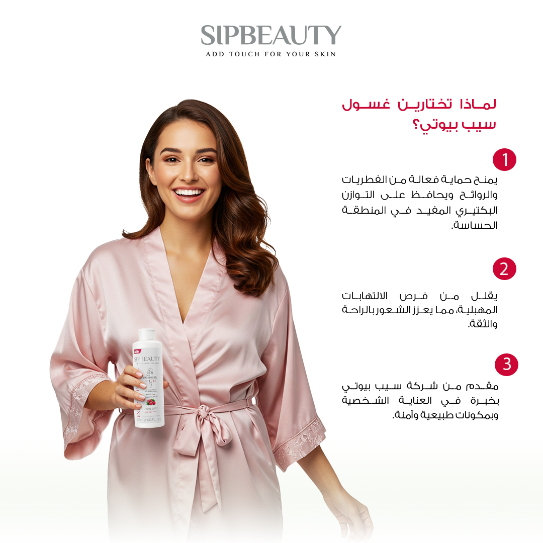 صُمم غسول سيب بيوتي النسائي بخلاصة التوت البري الطبيعي ودرجة حموضة pH 3.5 ليتناسب بلطف مع طبيعة المنطقة الحساسة. يمنحك شعورًا دائمًا بالنظافة والانتعاش، مع حماية متوازنة تحافظ على صحة البشرة وتمنع الالتهابات والروائح غير المرغوبة.